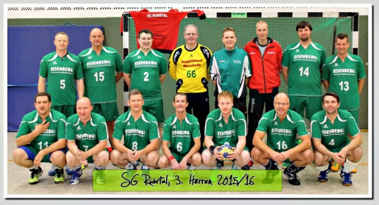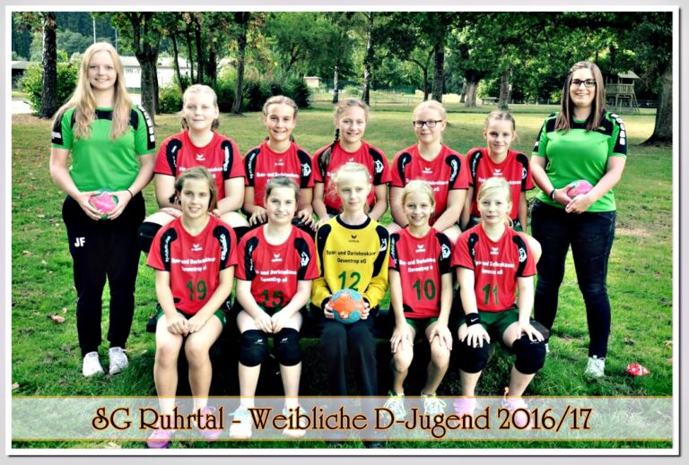 oben v.l. : Trainer Nils Stutzinger (TVA), Lennart Pöttgen, Johann Stutzinger, Johannes Drees, Lenny Trotter, Trainer Matthias Klute (SGR) unten v.l.: Jannis Tiemann, Willi Hesse, Hannes Burmann, Max Brandenburg, Malte Heydolph, Silas Hennecke, Louis Klute. Trainer:Matthias KluteHandy: 0151-56696316E-Mail: klute@sg-ruhrtal.com Jahrgang: 2004 – 2005 Spielklasse: Kreisliga Trainingszeiten: Montags, 17.15 – 18.45 Uhr (Rundturnhalle Arnsberg)Mittwochs, 17.00 – 18.30 Uhr (Ruhrtalhalle Oeventrop) Info: Momentan haben wir leider nicht genug Kinder, um als SGR am Spielbetrieb teilzunehmen, jedoch haben wir die Möglichkeit diese als „Gastspieler“ beim TV Arnsberg aktiv am Spielbetrieb einzubinden. Gerne nehmen wir interessierte, handballbegeisterte Kinder bei uns auf! Nr Mannschaft Spiele + ± – Tore D Punkte 1 HTV Sundwig – Westig 1 16/16 15 1 0 441:220 221 31:1 2 HTV Sundwig – Westig 2 16/16 11 2 3 391:307 84 24:8 3 JSG Menden Sauerland Wölfe 1 16/16 12 0 4 344:270 74 24:8 4 TV Arnsberg 1 16/16 10 1 5 363:272 91 21:11 5 JSG Bösperde-Halingen 16/16 8 0 8 351:350 1 16:16 6 HVE Villigst-Ergste 16/16 6 1 9 346:341 5 13:19 7 SG Iserlohn-Sümmern 1 16/16 4 1 11 302:351 -49 9:23 8 HSG Schwerte-Westhofen 16/16 3 0 13 238:383 -145 6:26 9 HSG Hohenlimburg 16/16 0 0 16 146:428 -282 0:32 Nr Datum Zeit Heim Gast Tore Punkte 18.09.16 14:00 TV Arnsberg 1 HTV Sundwig – Westig 1 13:20 0:2 25.09.16 11:30 HTV Sundwig – Westig 2 TV Arnsberg 1 28:21 2:0 23.10.16 11:30 JSG Bösperde-Halingen TV Arnsberg 1 13:26 0:2 30.10.16 11:00 TV Arnsberg 1 JSG Menden Sauerland Wölfe 1 18:14 2:0 12.11.16 14:00 TV Arnsberg 1 HVE Villigst-Ergste 18:16 2:0 26.11.16 16:30 SG Iserlohn-Sümmern 1 TV Arnsberg 1 11:21 0:2 11.12.16 10:30 HSG Schwerte-Westhofen TV Arnsberg 1 15:40 0:2 11.01.17 17:30 TV Arnsberg 1 HSG Hohenlimburg 30:10 2:0 15.01.17 11:00 HTV Sundwig – Westig 1 TV Arnsberg 1 28:23 2:0 29.01.17 11:30 HVE Villigst-Ergste TV Arnsberg 1 21:21 1:1 12.02.17 12:30 TV Arnsberg 1 JSG Bösperde-Halingen 21:17 2:0 04.03.17 16:00 TV Arnsberg 1 HTV Sundwig – Westig 2 14:15 0:2 12.03.17 10:00 TV Arnsberg 1 SG Iserlohn-Sümmern 1 29:23 2:0 15.03.17 18:00 JSG Menden Sauerland Wölfe 1 TV Arnsberg 1 24:17 2:0 19.03.17 10:00 HSG Hohenlimburg TV Arnsberg 1 5:24 0:2 26.03.17 12:45 TV Arnsberg 1 HSG Schwerte-Westhofen 27:12 2:0