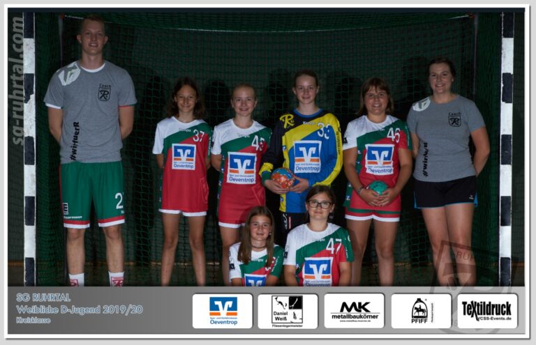 Nr Mannschaft Spiele + ± – Tore D Punkte 1 HSG Schwerte/Westhofen 2 20/20 15 3 2 463:312 151 33:7 2 SG Ruhrtal 20/20 12 3 5 460:326 134 27:13 3 TV Wickede 20/20 11 1 8 335:272 63 23:17 4 TV Neheim 1884 20/20 10 1 9 291:306 -15 21:19 5 VfS 59 Warstein 20/20 6 2 12 308:343 -35 14:26 6 TV Arnsberg 2 20/20 1 0 19 266:564 -298 2:38 Nr Datum Zeit Heim Gast Tore Punkte 001 09.09.18 13:00 TV Wickede SG Ruhrtal 12:14 0:2 004 16.09.18 15:00 SG Ruhrtal HSG Schwerte/Westhofen 2 22:23 0:2 009 22.09.18 15:45 TV Arnsberg 2 SG Ruhrtal 16:33 0:2 011 30.09.18 10:00 SG Ruhrtal TV Neheim 1884 31:16 2:0 014 07.10.18 14:30 VfS 59 Warstein SG Ruhrtal 10:17 0:2 016 04.11.18 13:00 SG Ruhrtal TV Wickede 26:8 2:0 019 11.11.18 14:30 HSG Schwerte/Westhofen 2 SG Ruhrtal 19:15 2:0 024 18.11.18 15:00 SG Ruhrtal TV Arnsberg 2 32:15 2:0 026 02.12.18 13:15 TV Neheim 1884 SG Ruhrtal 12:15 0:2 029 08.12.18 15:30 SG Ruhrtal VfS 59 Warstein 20:20 1:1 031 22.01.19 18:00 TV Wickede SG Ruhrtal 17:18 0:2 034 27.01.19 11:00 SG Ruhrtal HSG Schwerte/Westhofen 2 22:26 0:2 039 03.02.19 14:00 TV Arnsberg 2 SG Ruhrtal 11:32 0:2 044 17.02.19 15:00 VfS 59 Warstein SG Ruhrtal 21:21 1:1 041 20.02.19 18:45 SG Ruhrtal TV Neheim 1884 30:16 2:0 046 24.02.19 15:00 SG Ruhrtal TV Wickede 17:18 0:2 049 13.03.19 18:00 HSG Schwerte/Westhofen 2 SG Ruhrtal 26:26 1:1 054 16.03.19 15:30 SG Ruhrtal TV Arnsberg 2 34:10 2:0 056 24.03.19 14:30 TV Neheim 1884 SG Ruhrtal 15:14 2:0 059 11.04.19 18:30 SG Ruhrtal VfS 59 Warstein 21:15 2:0 Trainer:Julia PietzZum Siepenbach 3859823 Arnsberg0151-52514250julia_pietz@web.de Malte WeberAuf dem Mühlenberg 259872 Meschede-Freienohl Jahrgang:2004-2005 Trainingszeiten:mittwochs | 18.00 – 19.15 Uhr (Freienohl)donnerstags | 18.00 – 19.15 Uhr (Oeventrop) Spielklasse:Kreisklasse